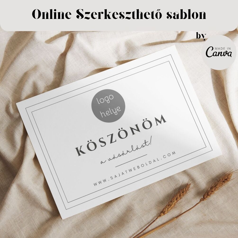 Szerkeszthető, személyreszabható Köszönőkártya, azonnali letöltés, csomagkísérő, köszönőüzenet, Canva sablon, nyomtatható, szerkeszthető köszönő rendelés #1007